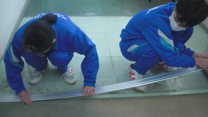 障がいの有無にかかわらず、支え合う共生社会について学んでいる上越市立名立中学校の話題です。教室などの出入り口をバリアフリーにしようと、2年生が26日、ドアのレールをでっぱりのあるものから平らなものに交換しました。
