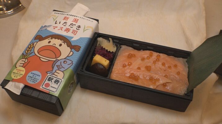 「新潟いただきマス寿司」は、1月14日から販売が始まっています。価格は税込みで1つ1600円です。ホテルハイマートや上越妙高駅内にある駅弁 山崎屋などで買うことができます。サーモンの切り身は大量に作ることができないため前日までの予約がオススメだということです。