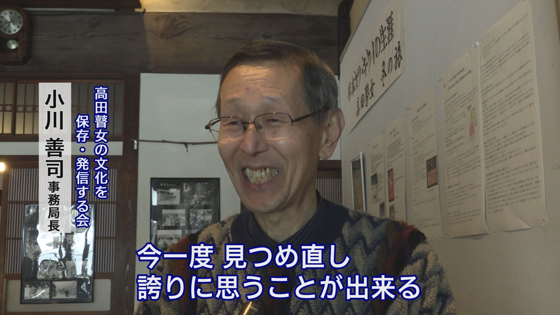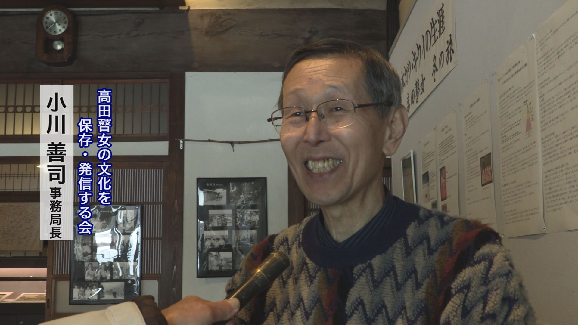 高田瞽女の文化を保存・発信する会の小川善司事務局長は開口一番「本当にうれしかった10年の集大成ここで実った」と満面の笑みを浮かべていました。