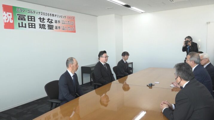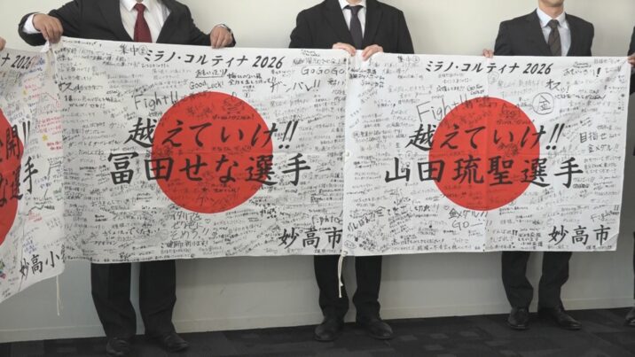 今月6日開幕するミラノ・コルティナオリンピックに出場する、妙高市ゆかりの冨田せな選手と山田琉聖選手を応援しようと、市民が書いたメッセージが関係者に贈られました。