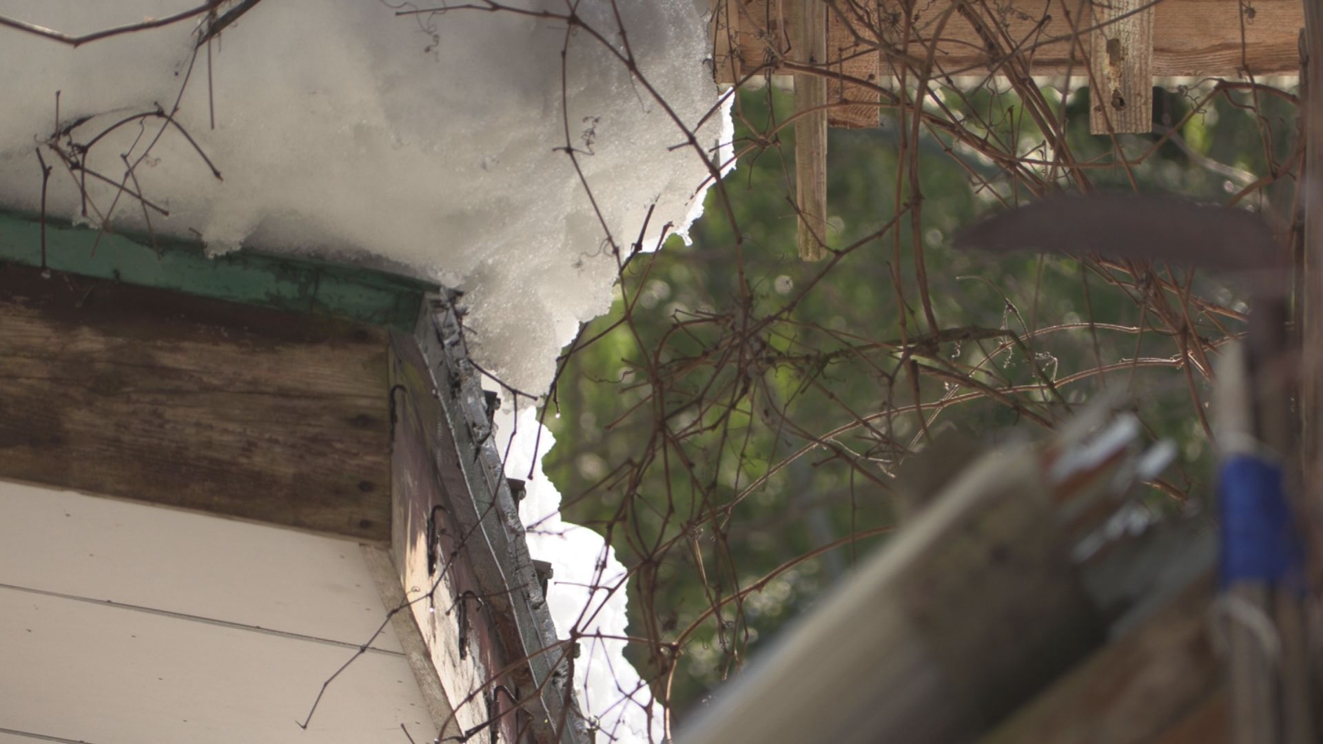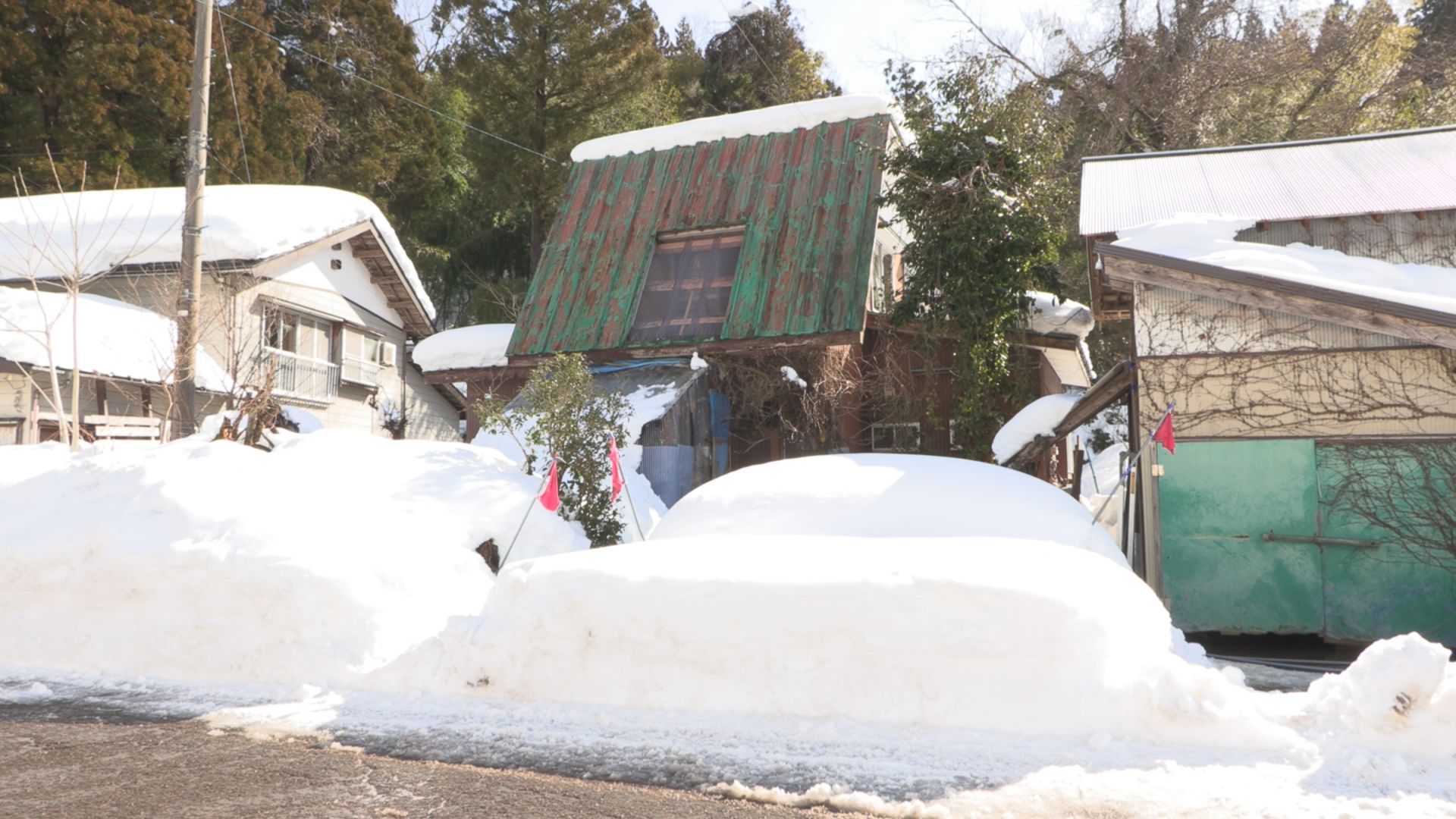 男性が埋まっていた場所の上、住宅の屋根には、雪下ろしをした跡があり、屋根の上にスコップが置いてありました。