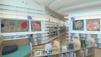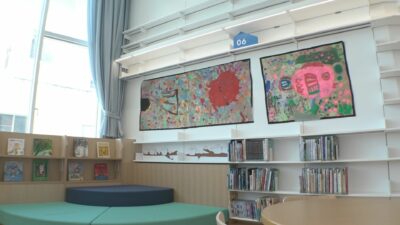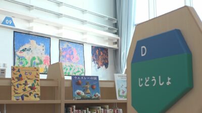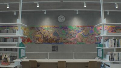 アート作品は「まちなか+」の図書館の中に展示されています。
