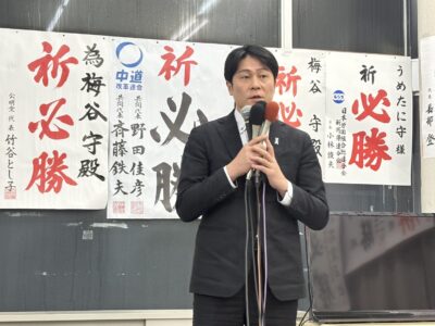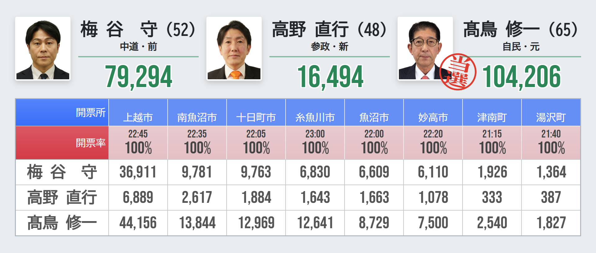 一方、梅谷さんも午後10時30分頃に上越市木田1の事務所に姿を見せ、開票結果を見守っていた支持者の前で次のように話しました。