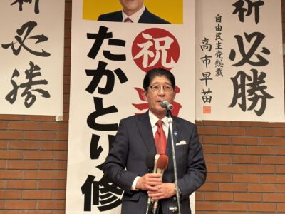「わが陣営は『何が何でも勝つぞ、今度こそ勝つぞ』という熱意と熱気と団結にあふれていたと確信している。約5割の無党派層からも支持をいただいた。これは高市政権に対する強い期待、信認の表れと受け止めている。皆さんの期待にしっかりと応えるのが私の責務。今回の政策争点の一丁目一番地が『責任ある積極財政』だった。今までの削るだけ、縮むだけの緊縮財政から、積極的に投資をする力強い経済状況を作る、成長する希望の持てる日本に生まれ変わっていく。その大きな政策大転換に国民の皆さんから強い信認をいただいたと確信している」