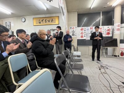 高鳥さんは午後10時30分ごろに上越文化会館に姿を見せ、開票結果を見守っていた支援者とともに万歳三唱をしました。