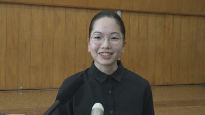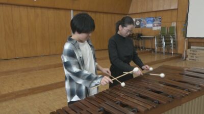 吹奏楽部 部長の浅野さんは木琴のマリンバで演奏します。去年から始めたばかりで、初めての出場です。演奏するのは早打ちが特徴の「プリズム」です。