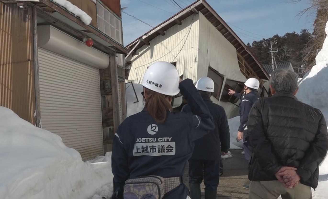 大雪で車庫が全壊するなど、建物被害が出た大島区田麦を上越市議会の災害対策特別委員会が12日(木)に視察し、被害状況を確認しました。
