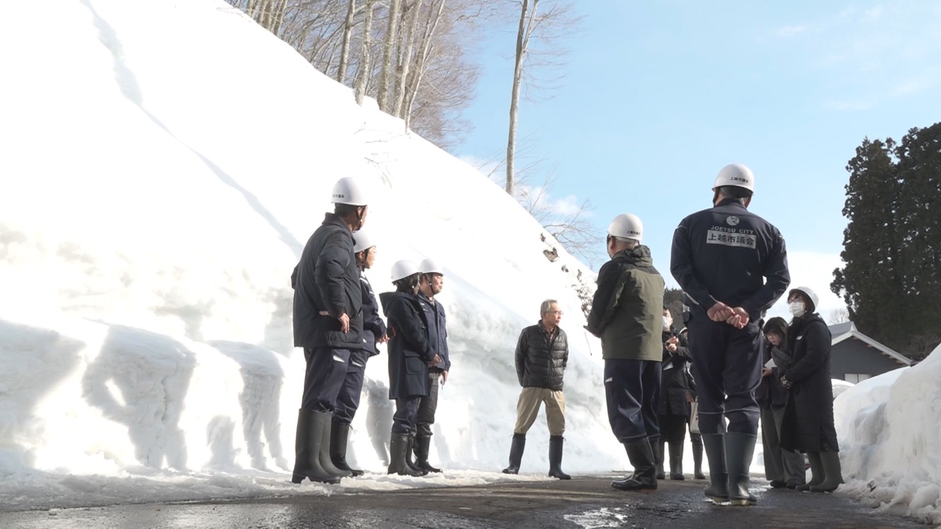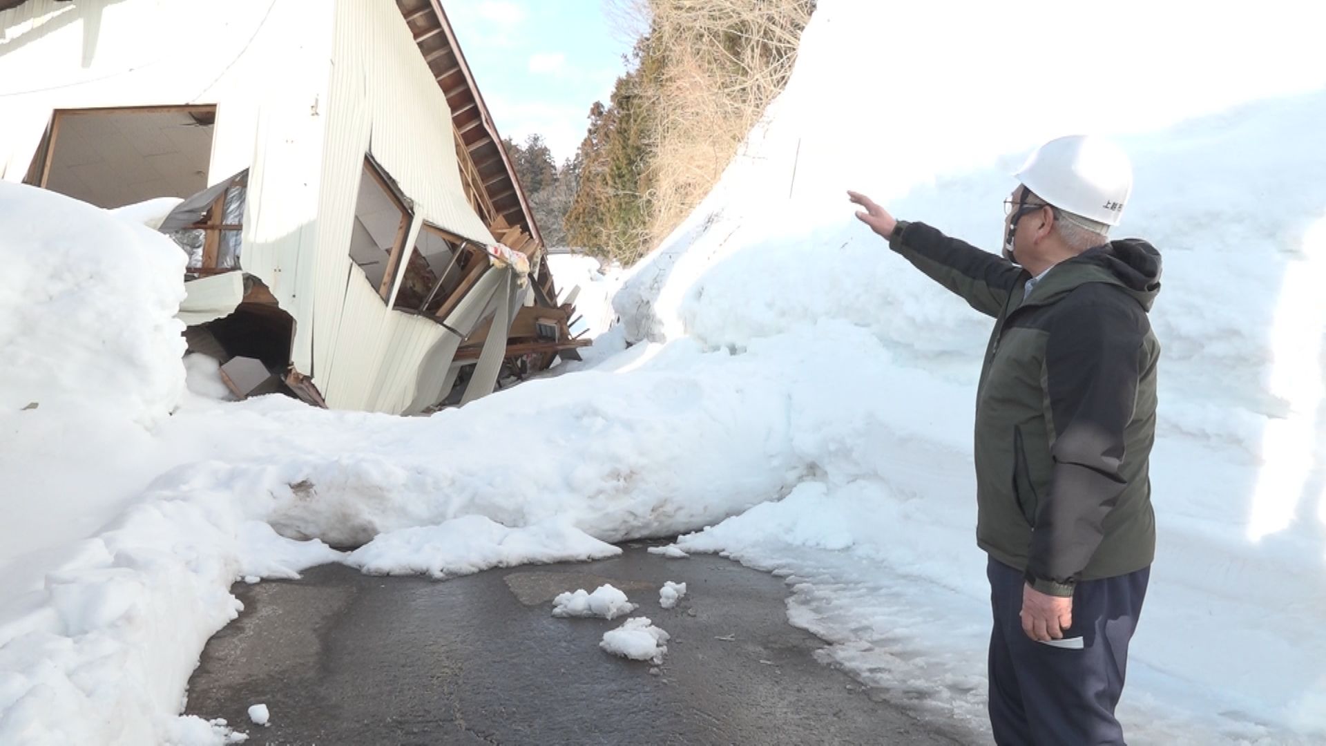 大島区田麦を視察したのは、上越市議会災害対策特別委員会に所属する市議会議員7人です。田麦では今月3日、積雪量が4メートル20センチを記録しました。この日、田麦では雪で車庫がつぶれる被害が1件確認されました。