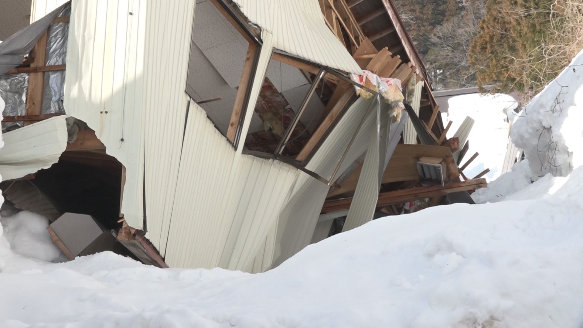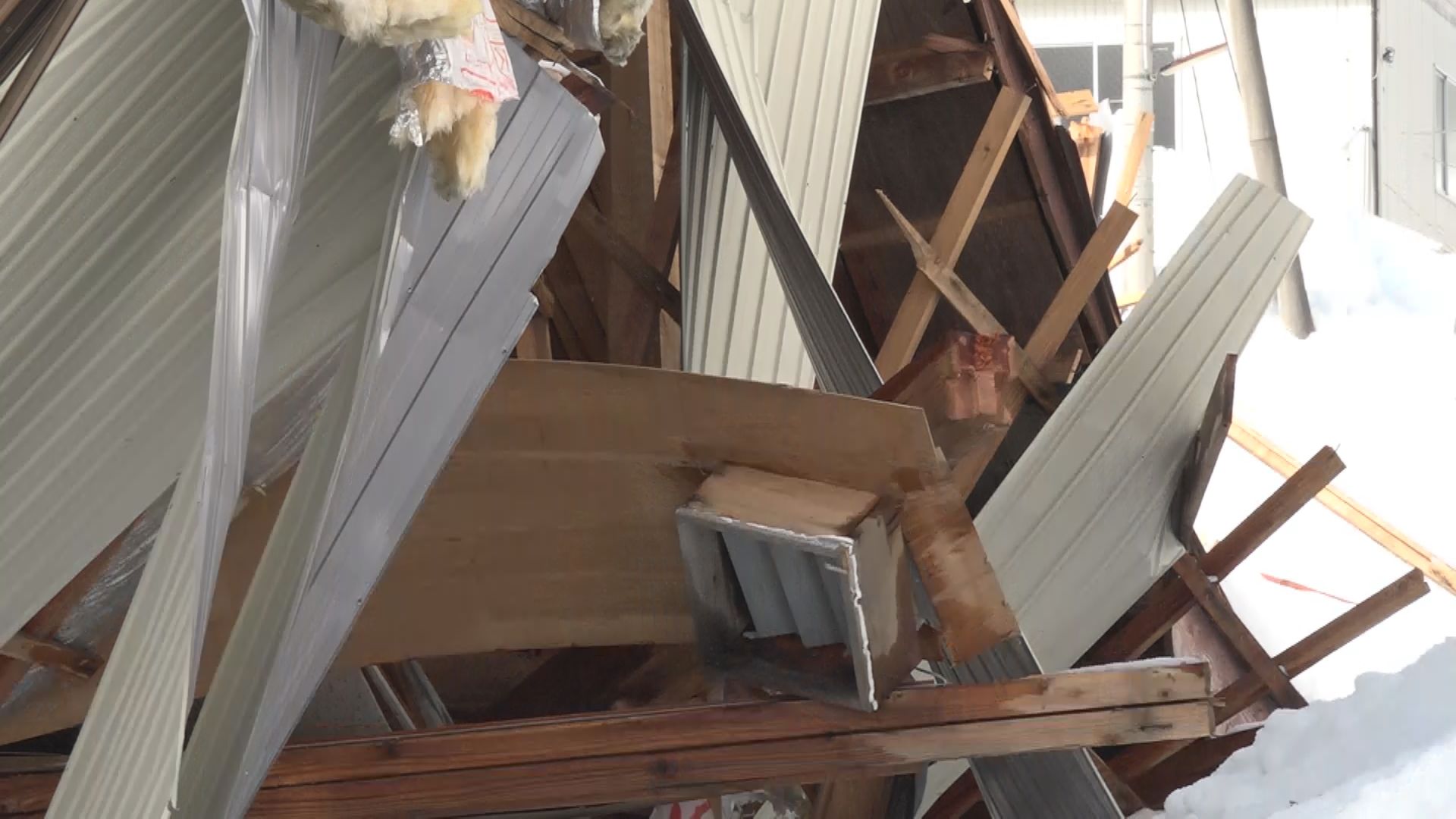 山岸さんによりますと、車庫の横に積もった雪の上に、屋根から雪が落ち、大きな塊となった雪が車庫を押しつぶしたということです。山岸さんたちは、倒壊前に1度、重機で除排雪をしていますが、雪が降り続いたため、今月5日に再び除雪をしようと話し合っていたところでした。