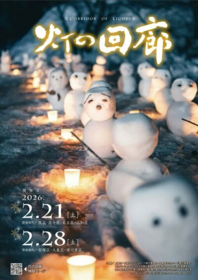 灯の回廊は21日(土)が牧区、高士区、三和区、名立区の4 会場で、28日(土)が安塚区、浦川原区、大島区の3会場で行われます。