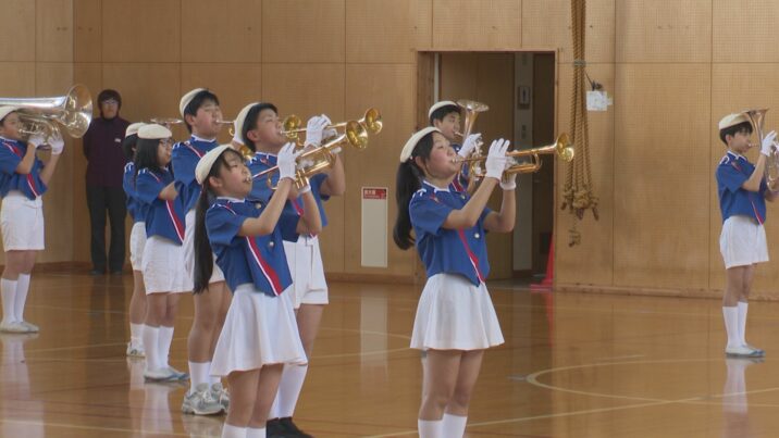 大町小学校のマーチングバンドの引き継ぎは毎年この時期に行なわれています。6年生34人は校内のほか、上越まつりの会場や学校と同じ高田地区にある老人ホームで演奏し、地域を盛り上げてきました。