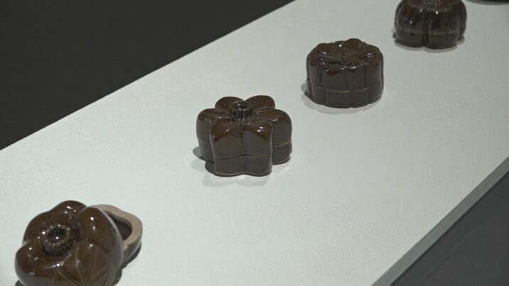 これは、大学4年生の大橋美桜さんが赤土や粘土で作った茶道で使う香合です。