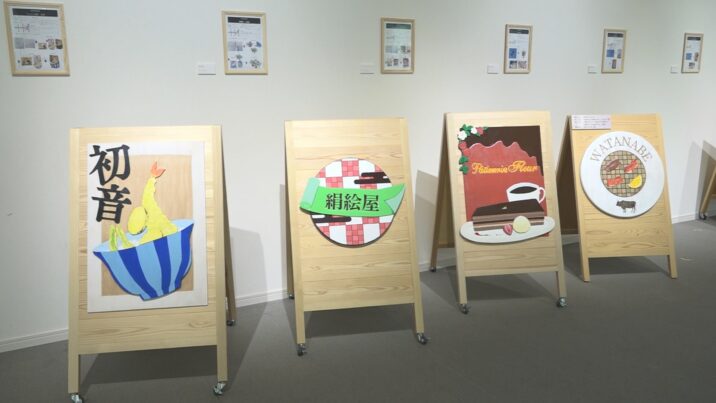 ほかにも、手書きのイラストとCGを合成した作品や、高田本町商店街の老舗の魅力を発信しようと大学院生が手掛けた絵看板などが展示されています。