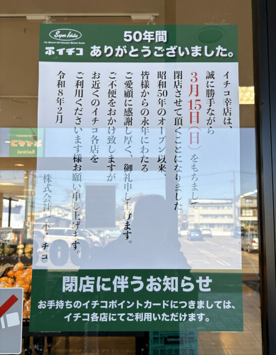 閉店後、イチコは新井店、高田西店、直江津店、高田南店、糸魚川店、直江津西店の6店舗での営業となります。