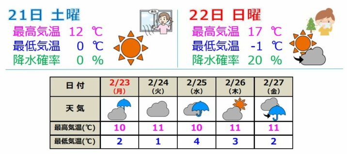 21日(土)からの3連休、土日は晴れて絶好のお出かけ日和となりそうです。