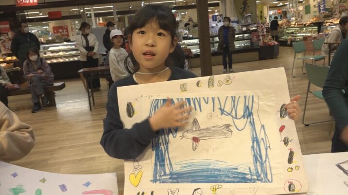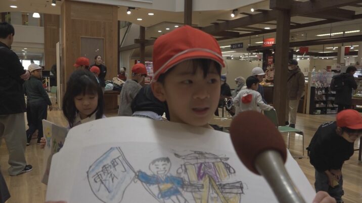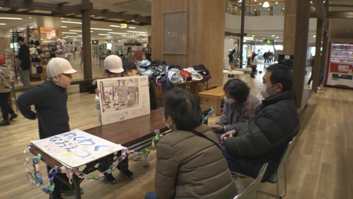 児童は総合学習で地元の魅力を調べ、それを多くの人に伝えようと1か月かけて紙芝居を作りました。この日は直江津ショッピングセンターエルマールで、買い物客などの前でそれぞれ発表しました。中にはクイズを出題する児童もいました。