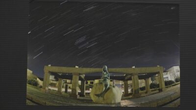 佳作に選ばれた横田幸弘さんの作品「夜を泳ぐ人魚」は、星空を背景に船見公園の人魚像を映しました。