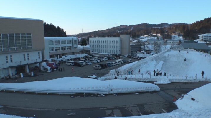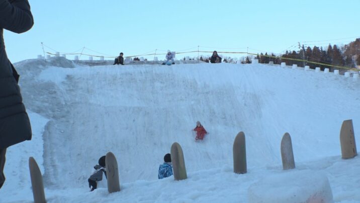 また、雪の滑り台が設けられました。高さは10メートル3階建てほどの高さです。