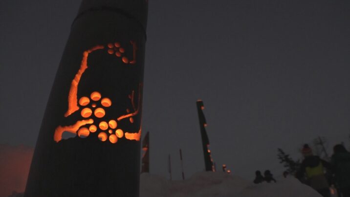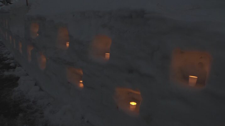 高さ13メートル、横幅35メートルほどの雪壁に2000個のろうそくが灯されました。