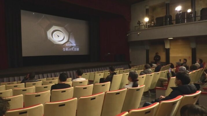 このイベントは高田世界館の改修が終わり、2月28日から営業が再開するのを前に、工事の内容を知ってもらおうと開かれました。参加したのは県内外のファンなどおよそ50人です。はじめに工事のようすを記録した映像が上映されました。