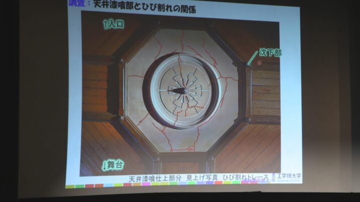 続いて館内の天井にある八角形の装飾の修繕を手掛けた東京にある工学院大学の田村雅紀教授が解説しました。高田世界館は115年前の1911年に建てられ、これまで新潟地震や中越地震、そして能登半島地震などを経験してきました。