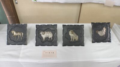これは彫金教室の受講者が制作した、十二支をデザインした作品です。