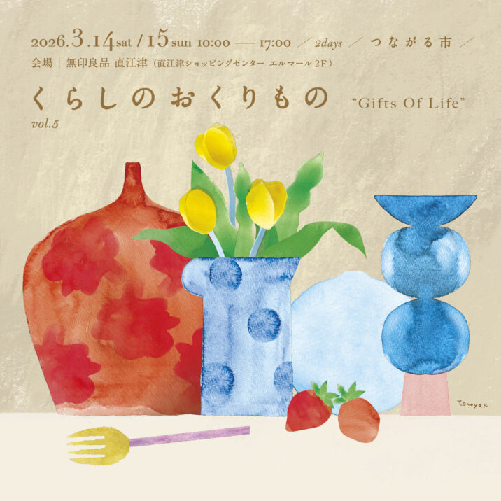 モノづくりに携わる人たちが集まり、こだわりの商品を販売するイベント「くらしのおくりもの”Gifts Of Life” vol.5」が3月14日(土)と15日(日)の2日間、無印良品直江津で開催されます。