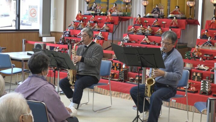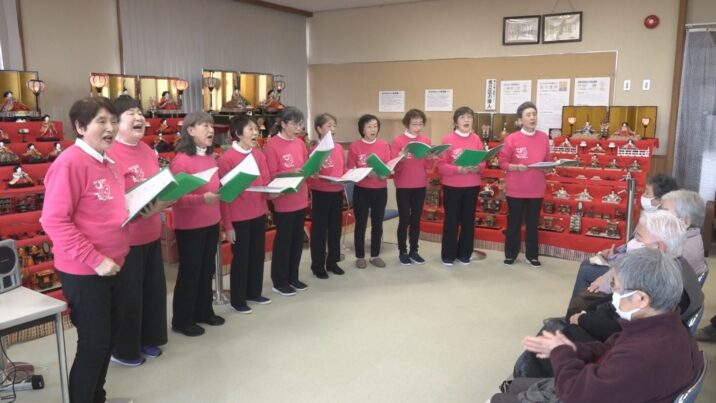 二胡やサクソフォンのグループのほか、 地元の「キラキラ合唱団」が出演し、「ひな祭り」や、「早春賦」「春が来た」などの演奏が披露されました。会場には60代から90代まで、およそ30人が集まり、一緒に口ずさんだりして鑑賞を楽しんでいました。