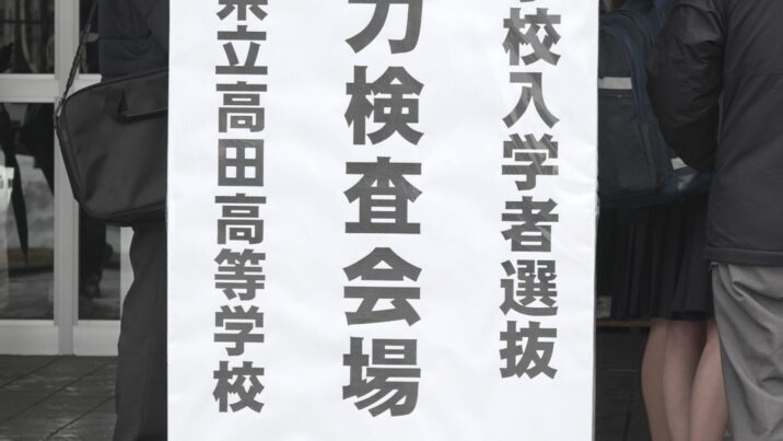 学力検査は、午前が国語と数学。午後は英語、社会、理科のあわせて5教科です。高田高校の倍率は、普通科が定員200人のところ207人が志願して1.03倍。理数科が定員40人のところ43人が志願して1.07倍です。