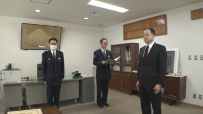 上越警察署の留置場に11年以上にわたり毎日3食の食事を届けてきた「かたおか」に9日(月)、署から感謝状が贈られました。