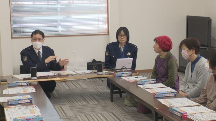 はじめに、詐欺の手口について電話で家族や孫をかたって金を振り込ませる「オレオレ詐欺」をはじめ、SNSを使った「投資詐欺」などがあることが説明されました。このあと、電話で金をだましとる「オレオレ詐欺」の実際のやりとりが音声で紹介されました。