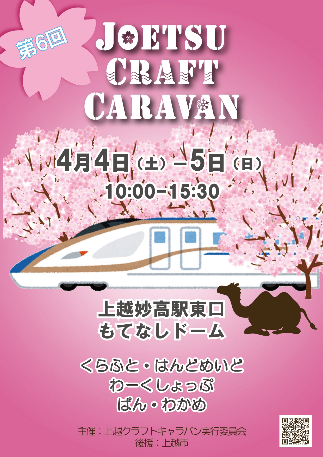 観桜会の開催にあわせて、クラフトイベント「上越クラフトキャラバン」が4月4日(土)と5日(日)の2日間、上越妙高駅東口のもてなしドームを会場に開かれます。