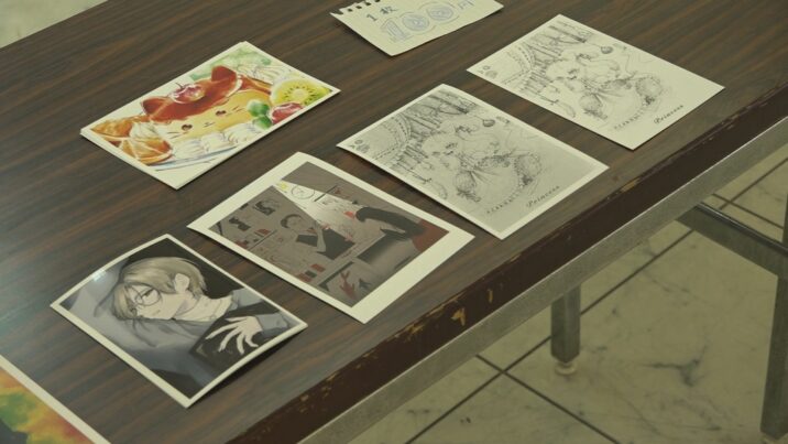 会場では作品のポストカードや部員が作ったオリジナルステッカー、キーホルダーが販売されました。