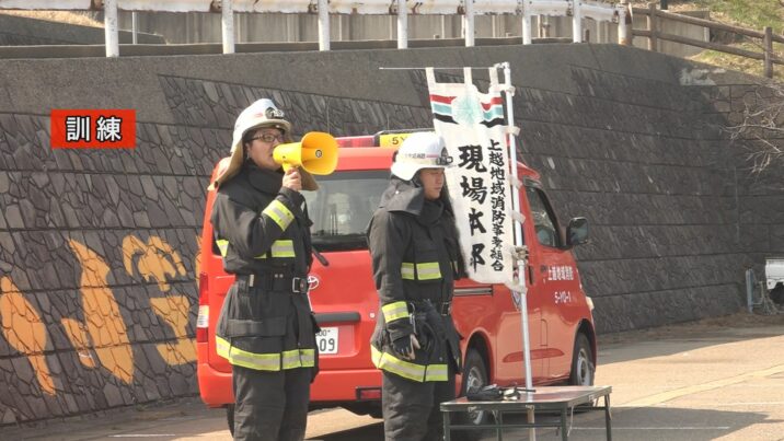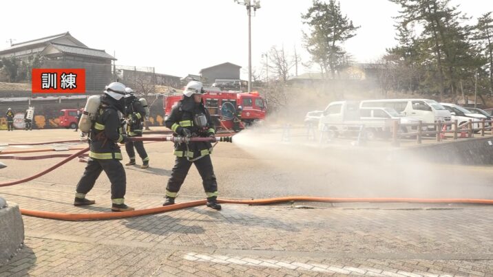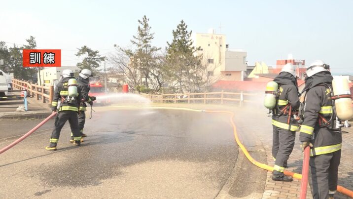 上越地域消防局管内で今年に入り火災が多発しています。去年の同じ時期に比べて20件増えていて、消防は改めて火の取扱いに注意するよう呼びかけています。そうしたなか、来月1日(水)から「春の火災予防運動」がはじまるのにあわせて、24日(火)に上越市大潟区にある日帰り温泉施設「鵜の浜人魚館」で消防訓練が行なわれました。