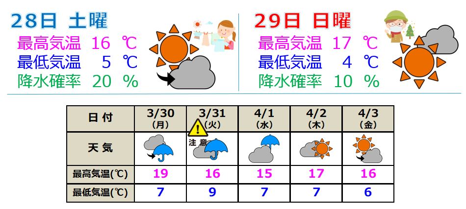 ・年度末となる火曜日は雨の予想。雨量が増える恐れがあり注意が必要