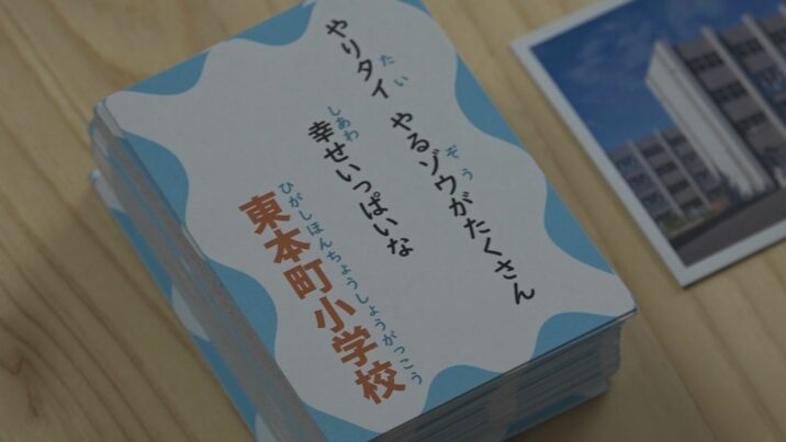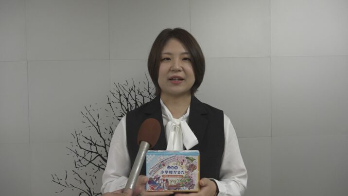 「児童のみんなに協力してもらったかるたが完成してうれしい。自分の小学校に愛着を持ってほしいのと、友達の小学校や地域の事を知るきっかけになってほしい」