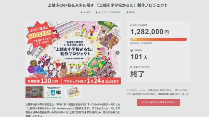 制作費はクラウドファンディングで支援を呼びかけ、目標金額120万円に対し101人から128万2000円が寄せられました。