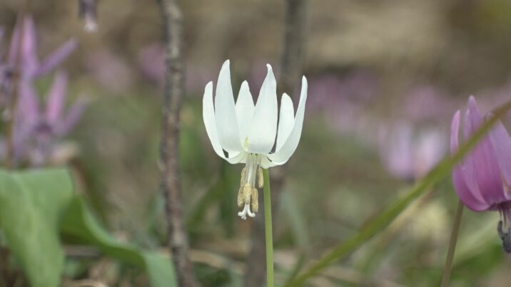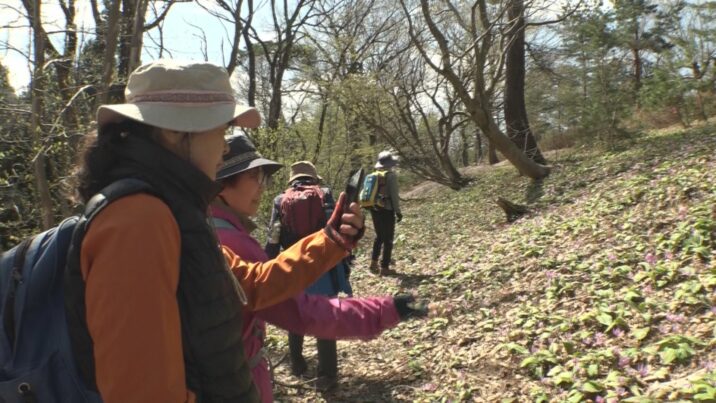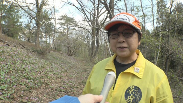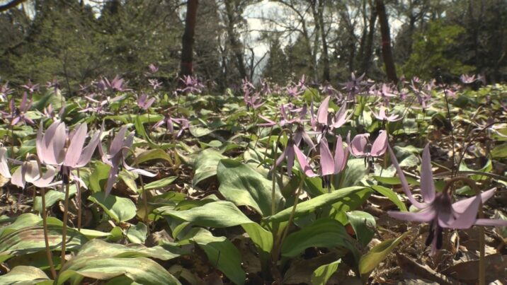 「雪解けが遅かったが例年並み。朝は花びらが閉じていて、日が当たると反り返る。それがカタクリらしさ。カタクリがきれいなのでぜひ見に来てもらいたい。白いカタクリを見つけるのも楽しいと思う」