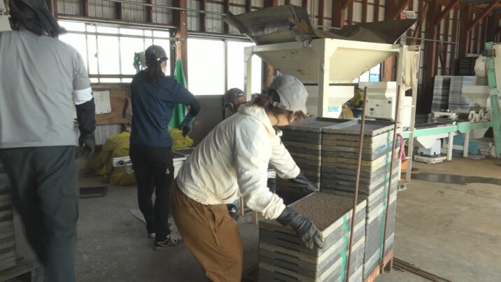9日(木)は職員など5人が箱を並べたり、専用の機械に土を補充する作業に追われていました。