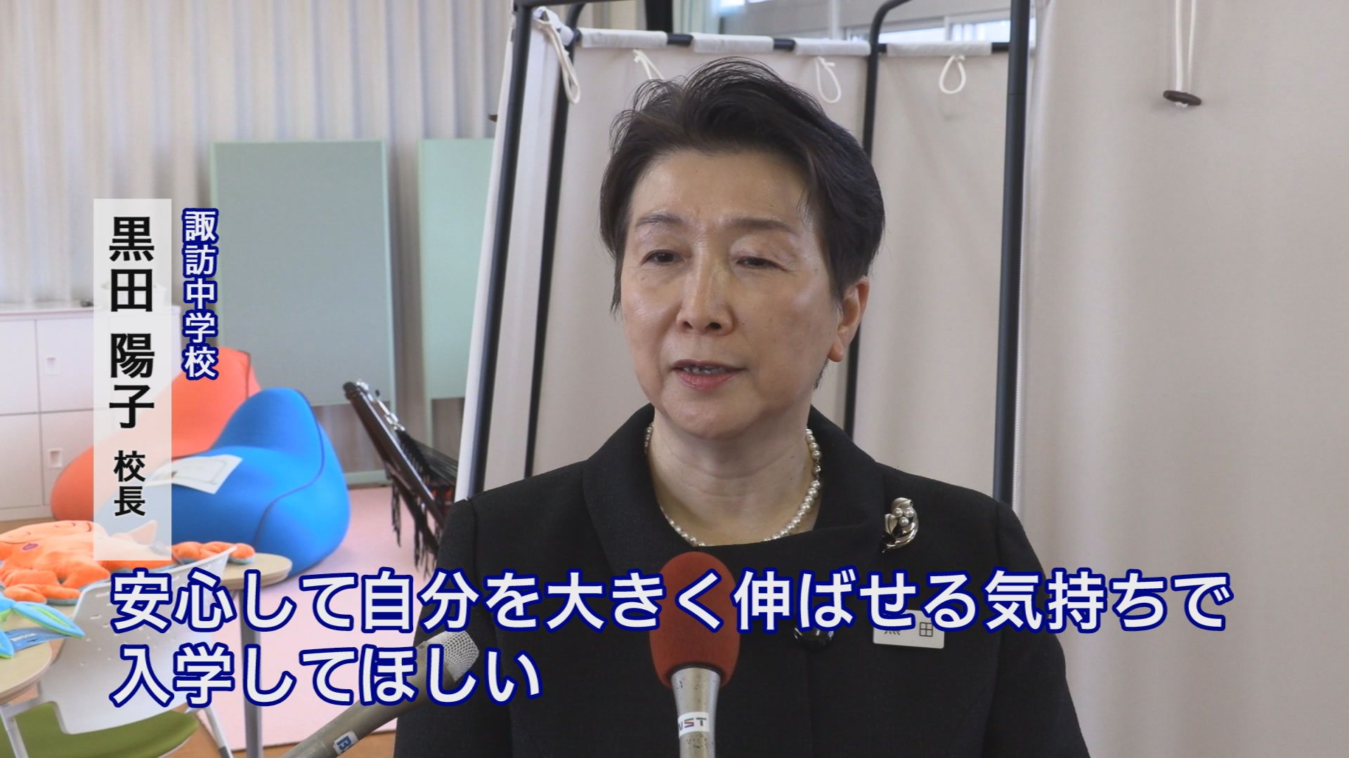 諏訪中学校の黒田陽子 校長は「中学校の時間割は、時間に追われて進めるのが通常だが、ここは少し離れて自分と向き合いながら自分の学びを進められる。安心して入学して来てほしい」と話していました。