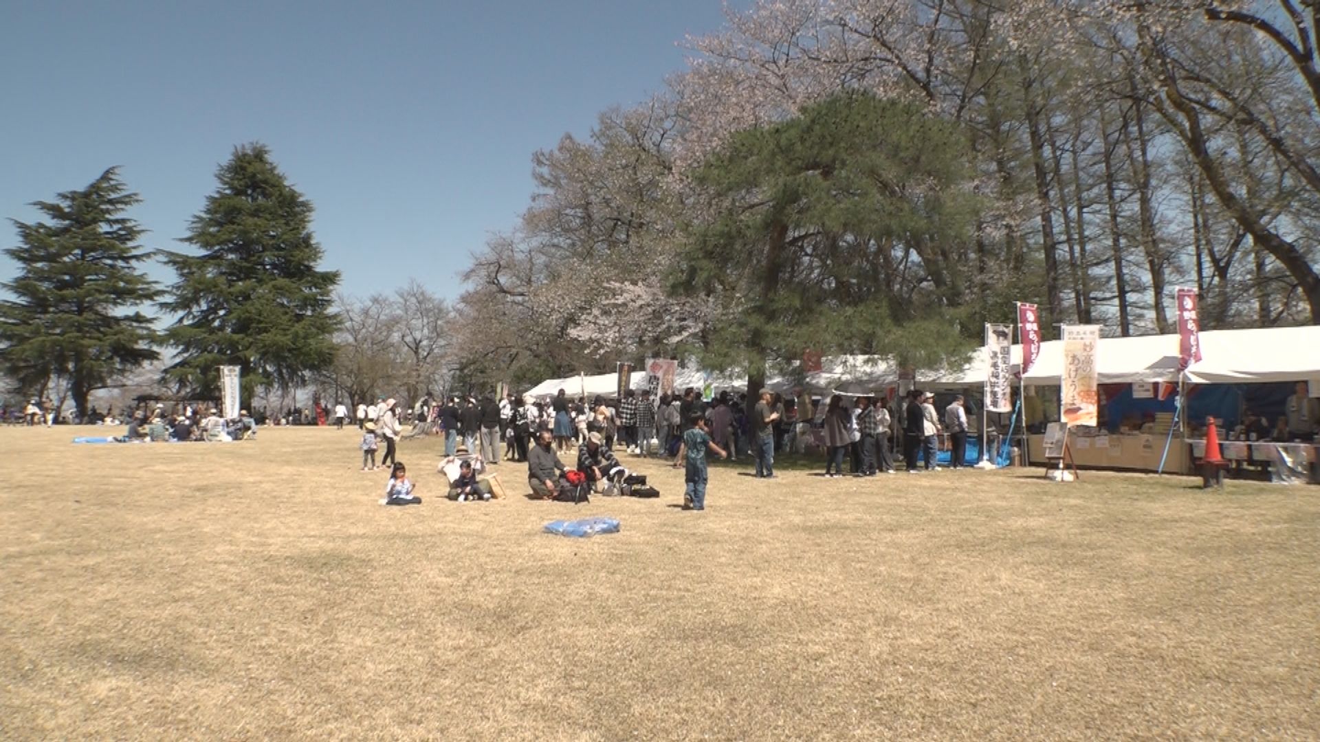 会場の経塚山公園には ソメイヨシノやヨウコウザクラなどおよそ300本のサクラがあります。11日と12日は散り始めで、風が吹くたびにサクラ吹雪が舞っていました。