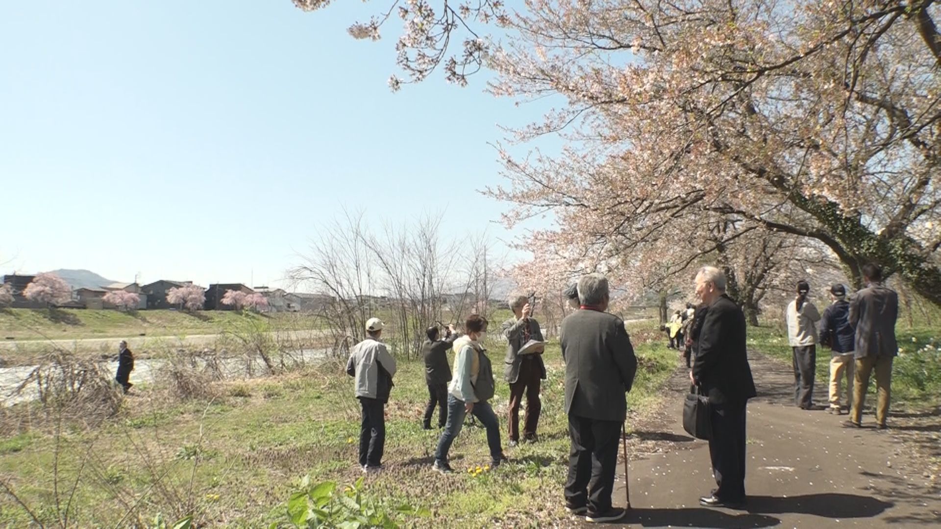 妙高市の矢代川にかかるはねうま大橋周辺です。12日(日)は青空が広がる中、景色を写真に収めようと多くの人が訪れていました。矢代川沿いのサクラ並木では、歩きながら俳句を作る句会が開かれていました。参加したのは、妙高市と上越市の29人です。