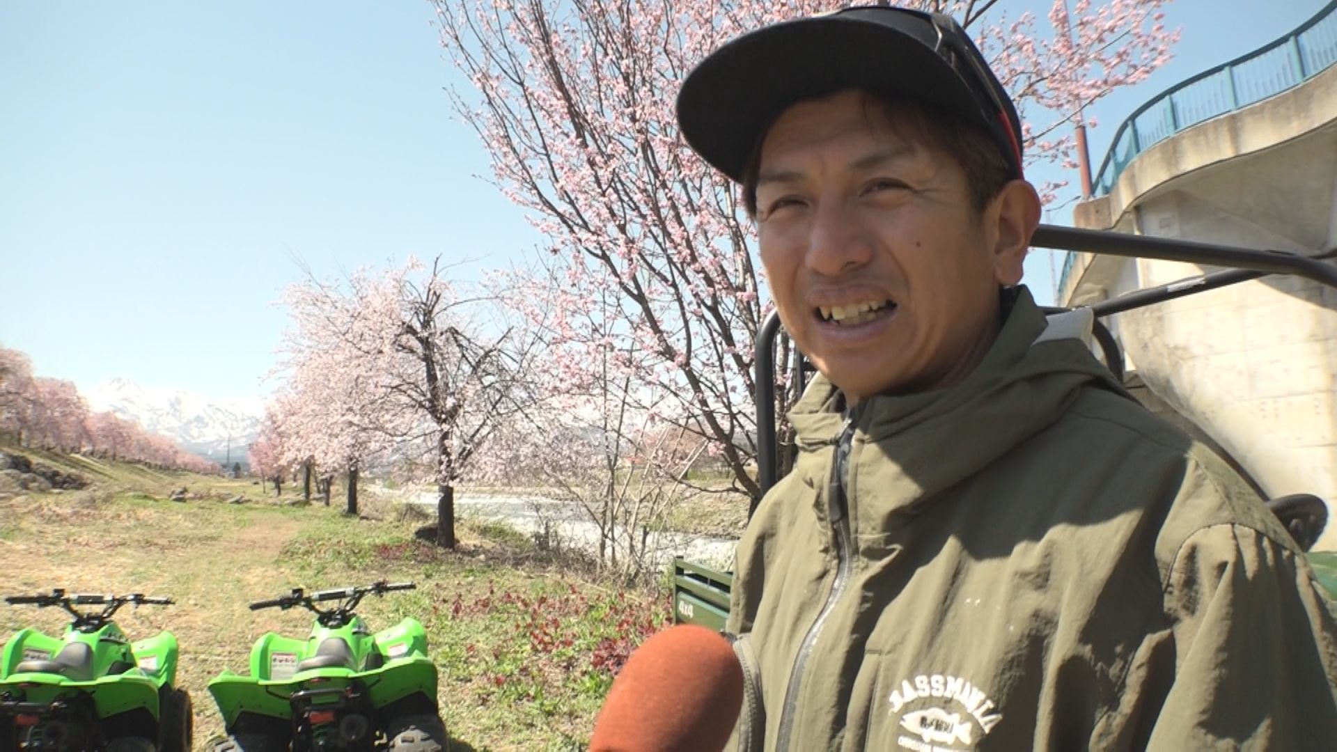 一方河川敷では、バギーに乗ってサクラと妙高山の景色を楽しむイベントも開かれています。