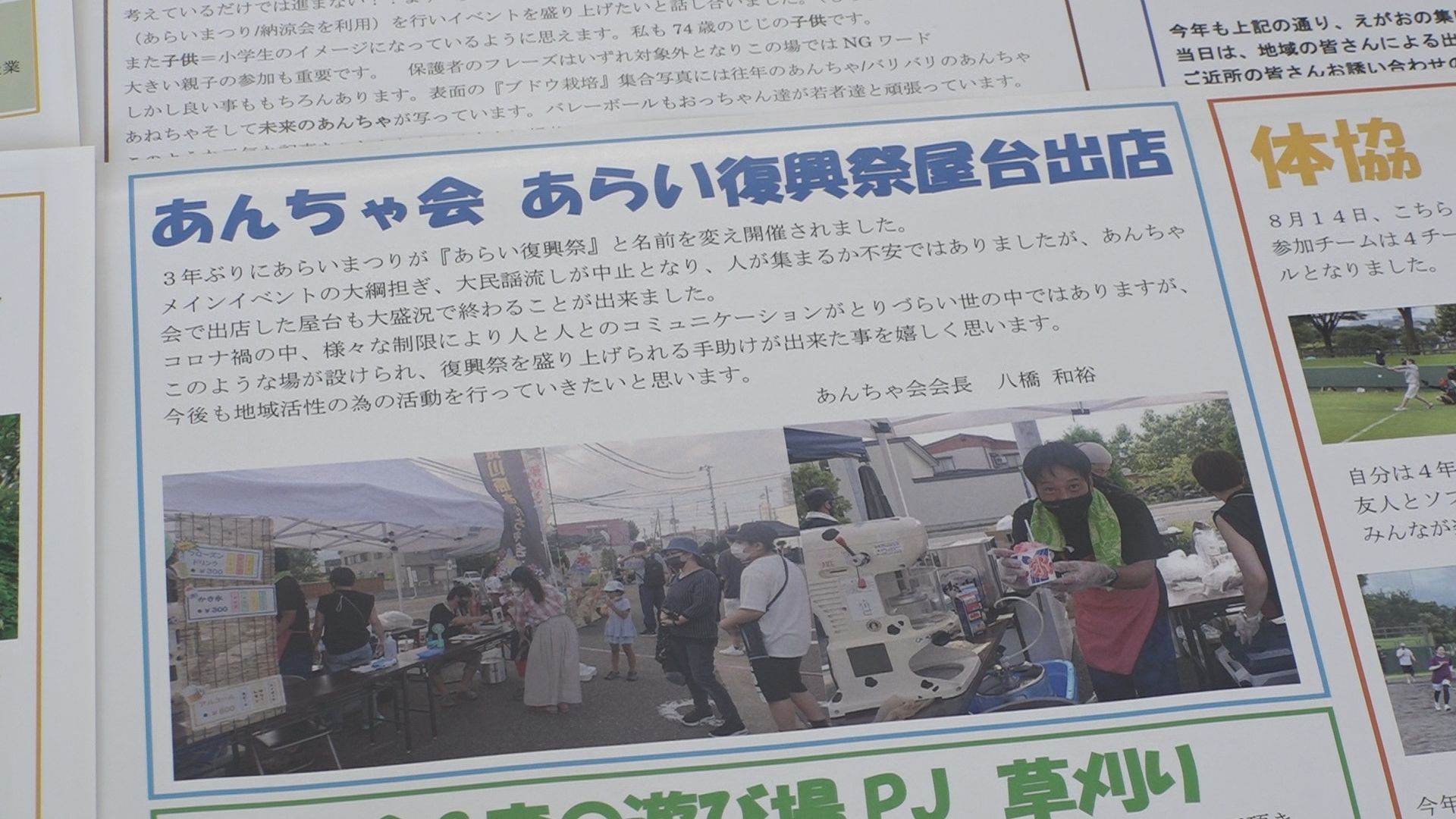 A3またはA4サイズの紙に地域の行事や活動報告などが写真と文章で掲載されています。