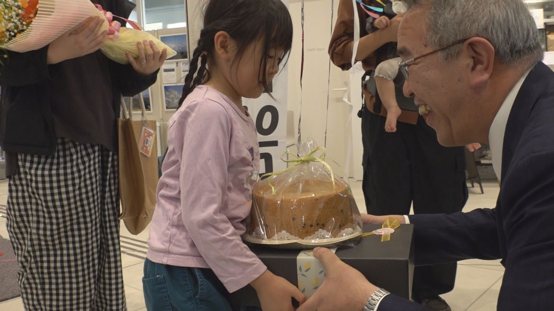 18日(土)午前11時過ぎ、10万人目の入館者となったのは妙高市に住む冨永さん一家です。