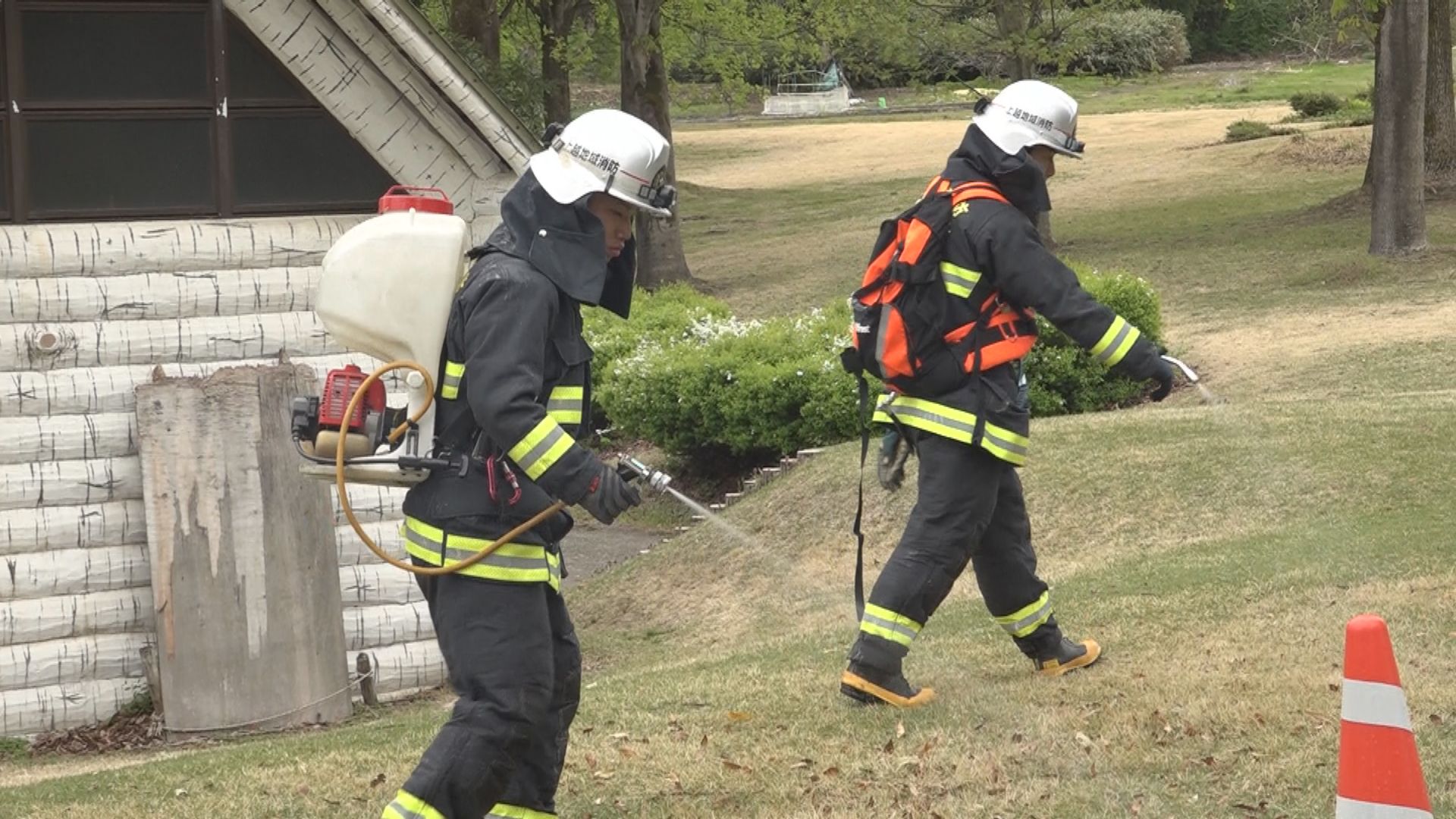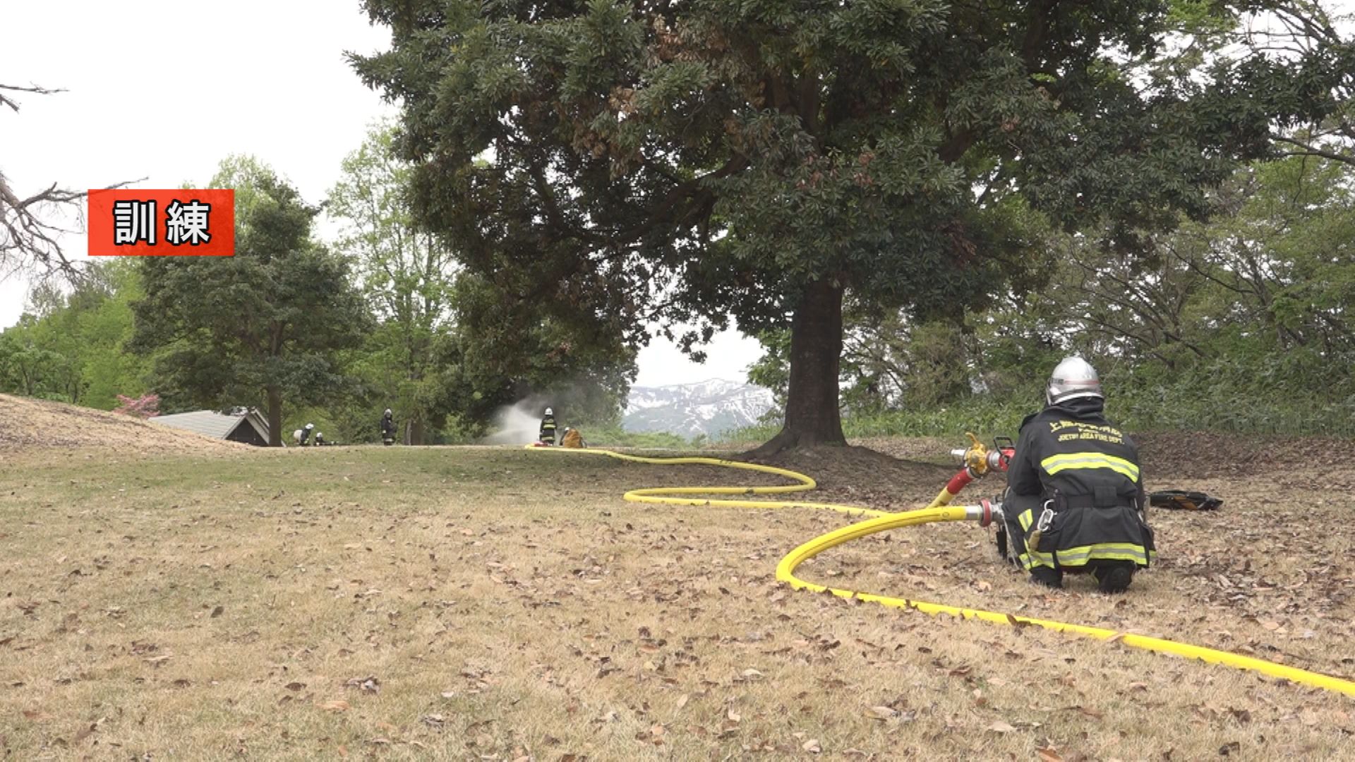 全国的に増えている林野火災を想定した消防訓練が23日(木)、妙高市の新井総合公園で行われました。