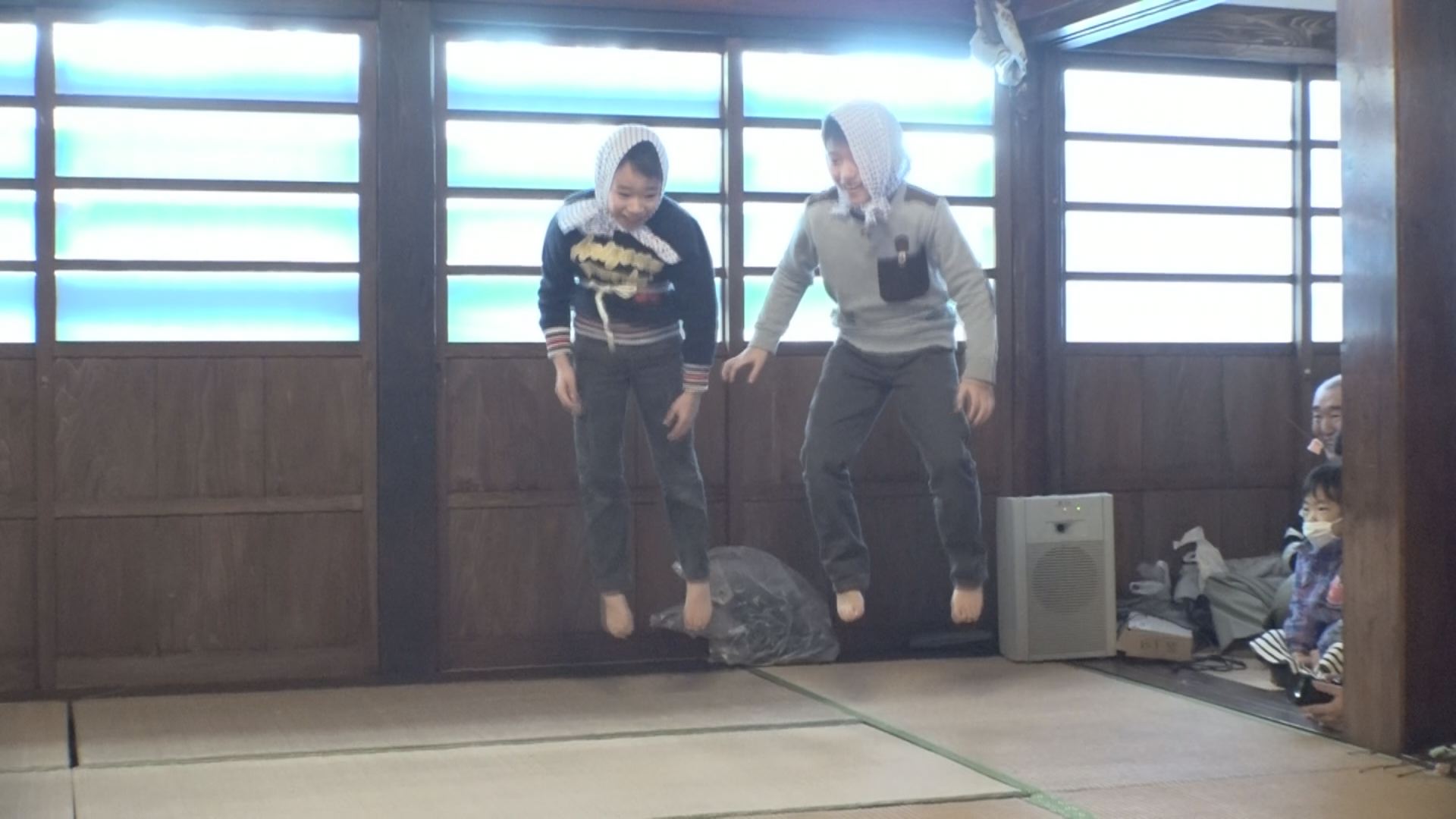 馬役は1回に6人、部屋の中を3周3回ずつ跳ねる