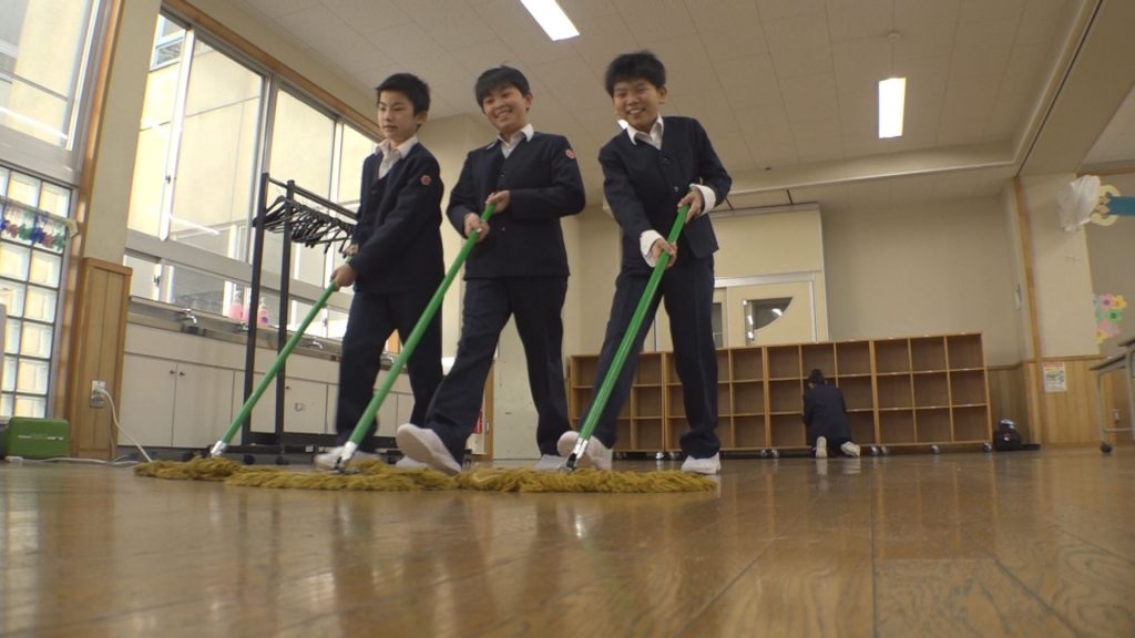 上越教育大学附属小学校で5日、新6年生になる児童がひと足早く登校し、新年度に向け全学年の教室で備品の移動や清掃作業にあたった。