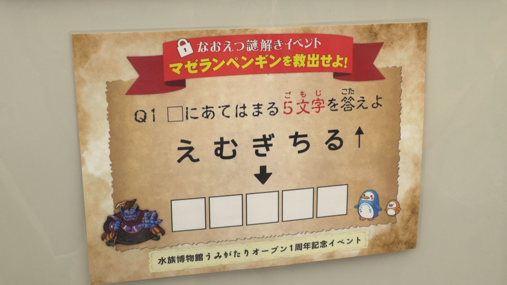 クイズは「うみがたり」のペンギンが連れ去られたという内容で、ペンギンを救出するために会場5か所にある問題を解くというものだ。
