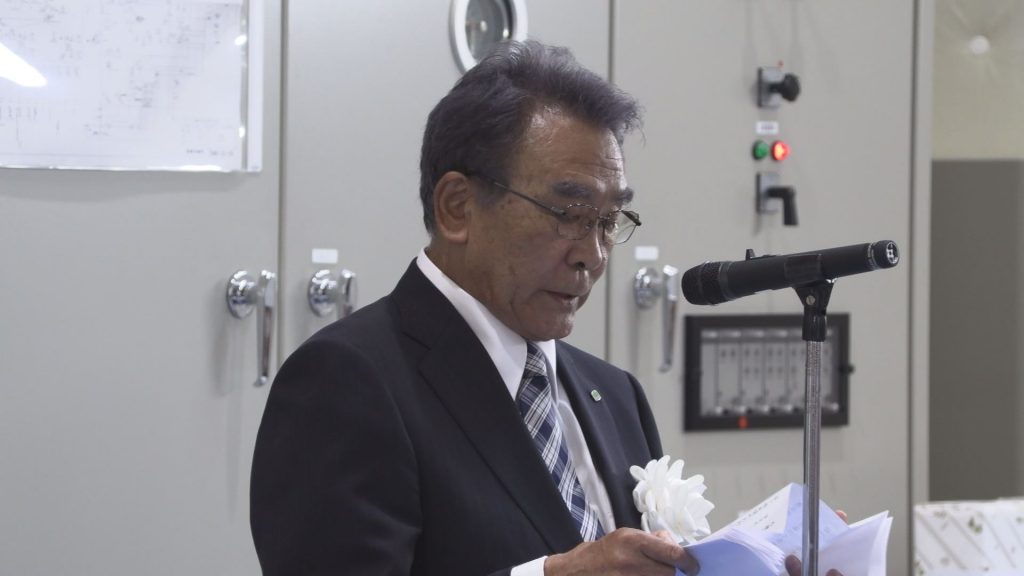 1日に開かれた稼働記念式典では、関川水系土地改良区の齋藤義信 理事長が発電所の完成に感謝し「安定的に売電益を得るには笹ヶ峰発電所の効率的な稼動と運営が不可欠。3土地改良区の組合員6,130名の期待に応えるよう努力していく」と話した。